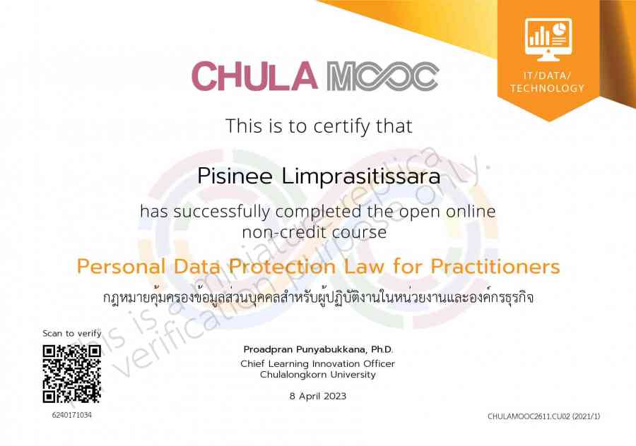 กฎหมายคุ้มครองข้อมูลส่วนบุคคลสำหรับผู้ปฏิบัติงานในหน่วยงานและองค์กรธุรกิจ รุ่นที่ 2 (จุฬาฯ)