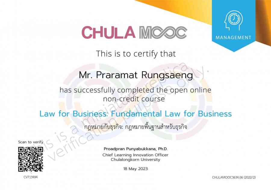 Certificate from for Praramat Rungsaeng